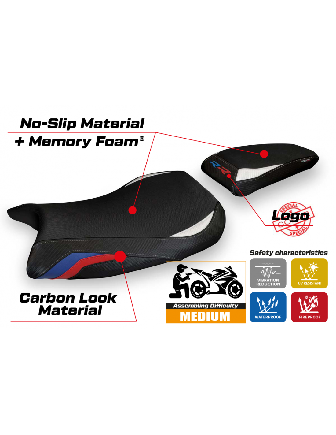 Rivestimento sella compatibile - BMW S 1000 RR 2019-2025 - mod Deruta 1 Comfort System